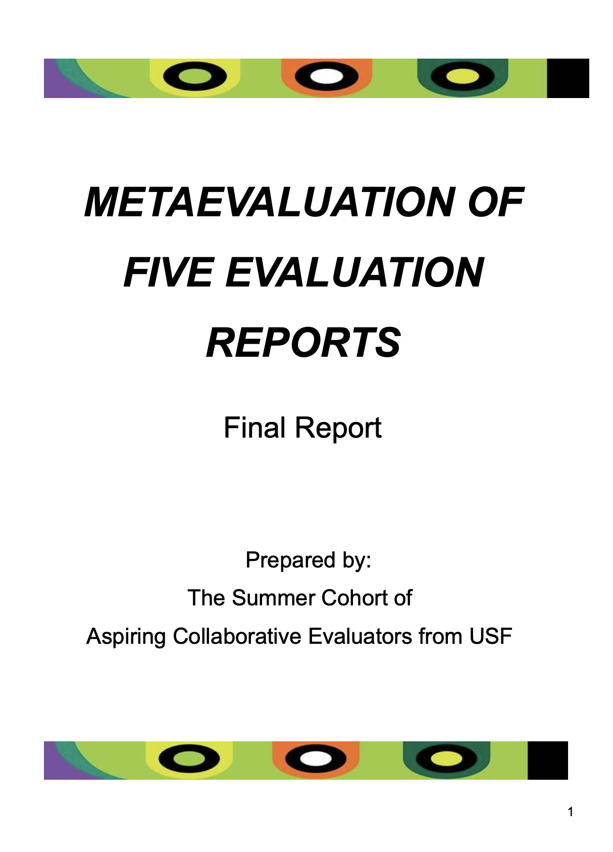 This collaborative metaevaluation has been deidentified to preserve the identify of the client. The goal was to assess not just programs, but the evaluations conducted on them. Using Stufflebeam's checklist and the Joint Committee's standards, our team of seven produced a comprehensive consumer report, synthesis, and recommendation set showing that none of the five evaluated reports met full standards at either the conservative or moderate rigor level.